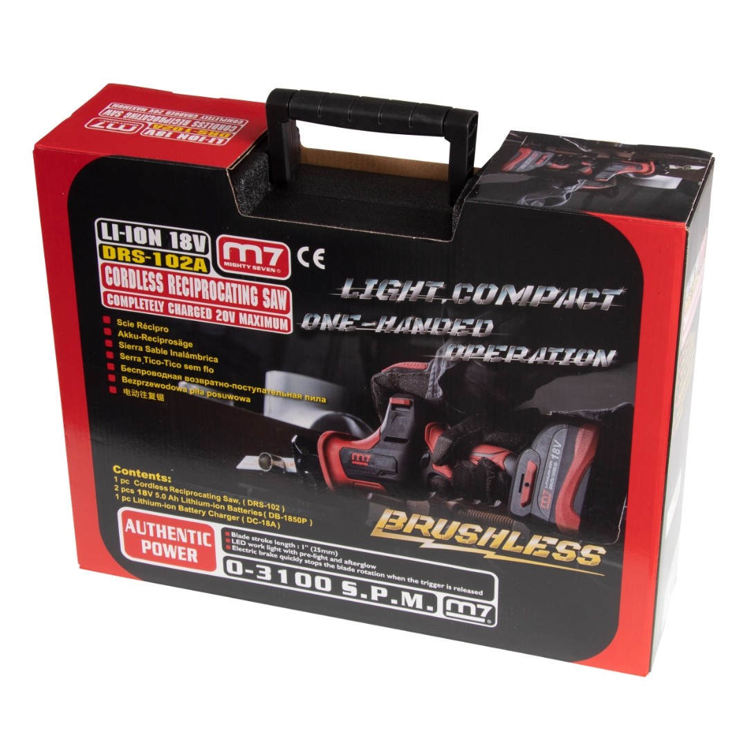 Пила сабельная аккумуляторная 18 в, 4 предмета, кейс mighty seven drs-102a характеристики