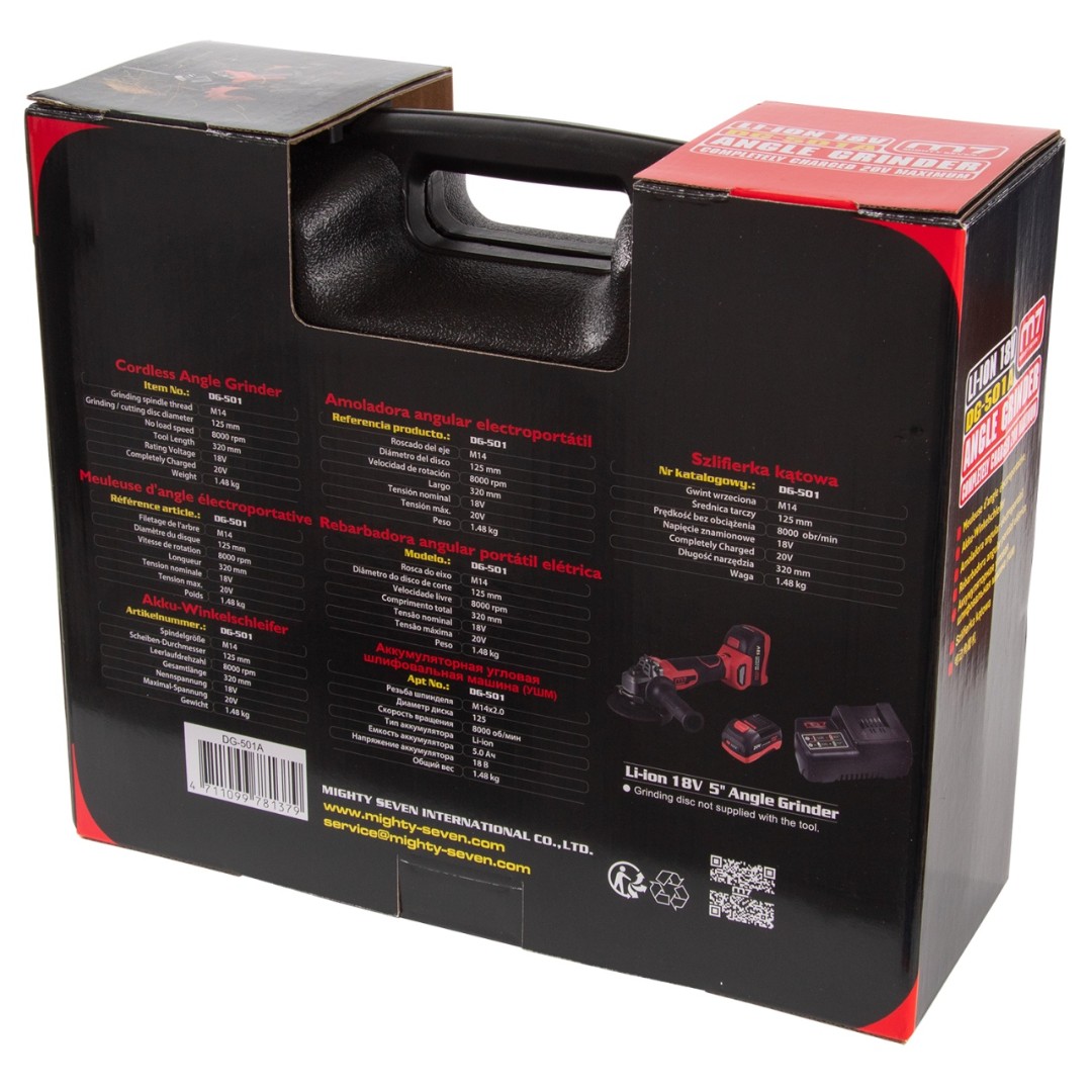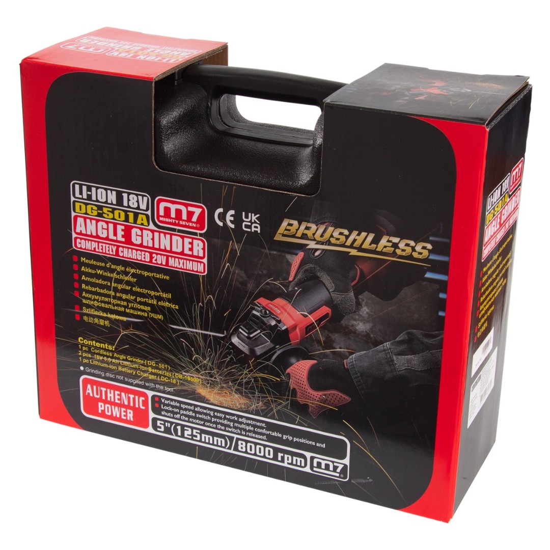 Шлифмашина угловая (ушм), 125 мм, 18 в, аккумуляторная, кейс mighty seven dg-501a характеристики