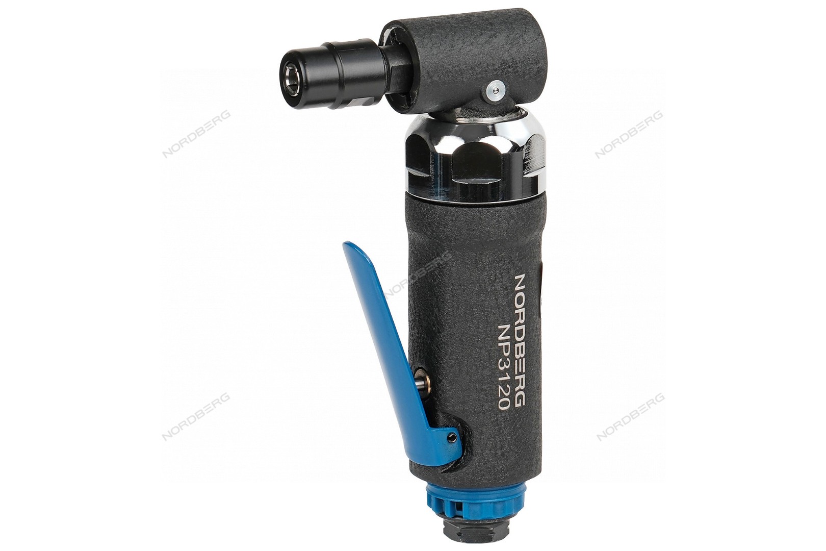 Угловая пневматическая бормашинка NORDBERG NP3120 – пневматический инструмент для обработки деталей в труднодоступных местах. Цанговый зажим повернут на 90 градусов к корпусу. Применяется в автосервисных и производственных предприятиях, в которых есть подключение к сжатому воздуху.