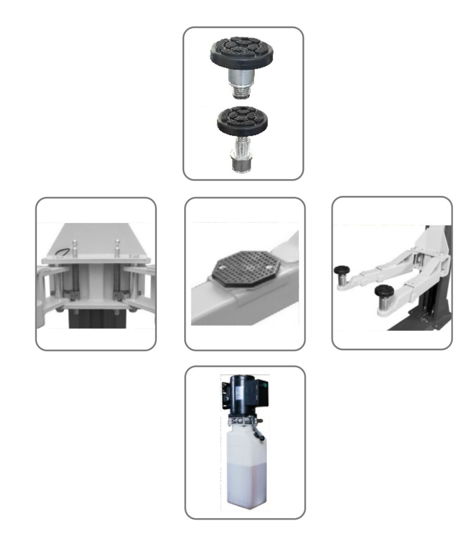 - Скользящие адапторы на лапах для увеличения диапазона обслуживаемых автомобилей