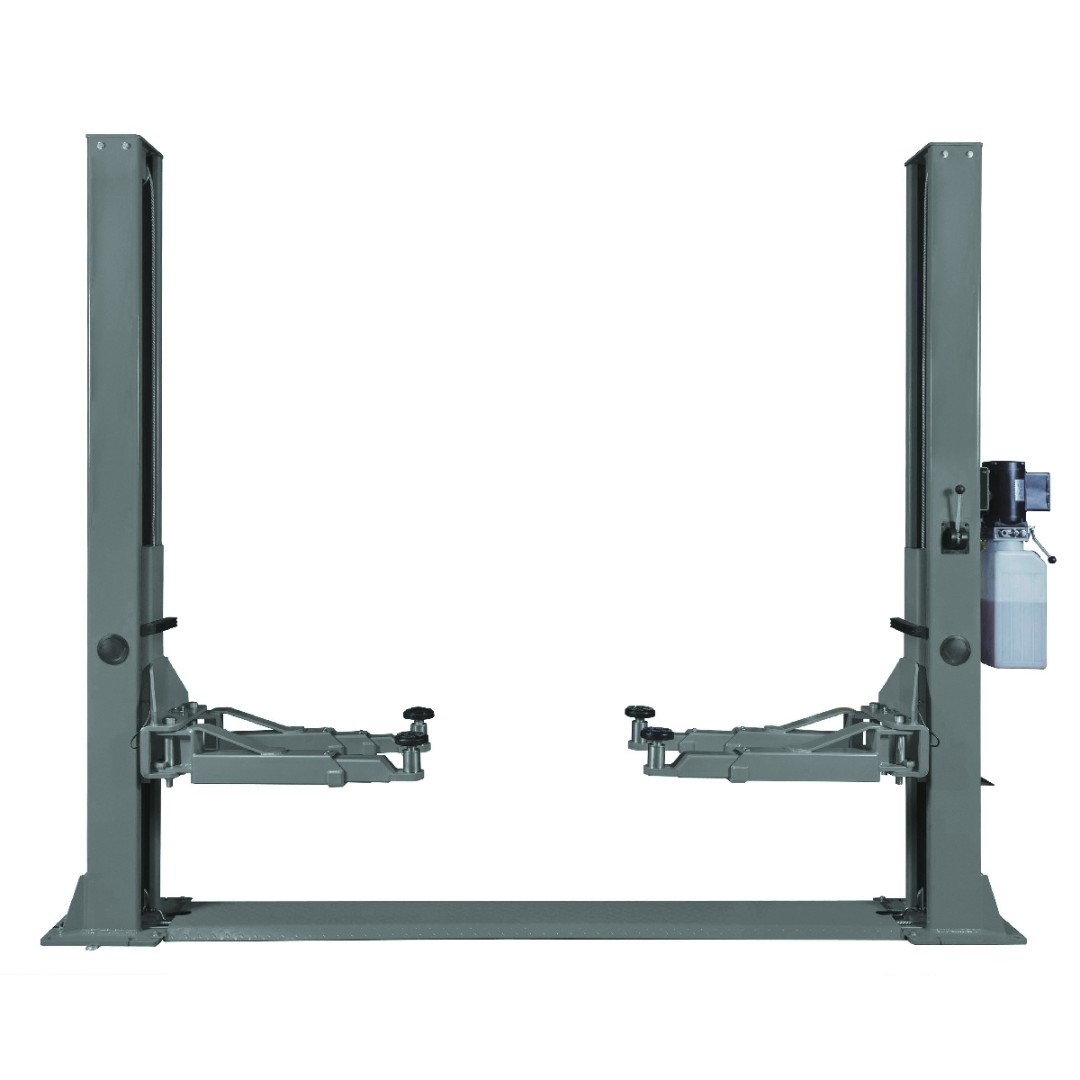 Подъемник двухстоечный электрогидравлический с управлением стопорами на одной колонне, асимметричный, двухцилиндровый, г/п 4000 кг., 2,2 кВт, высота подъема 2010 мм., расстояние между стойками 2820 мм., с нижней синхронизацией.