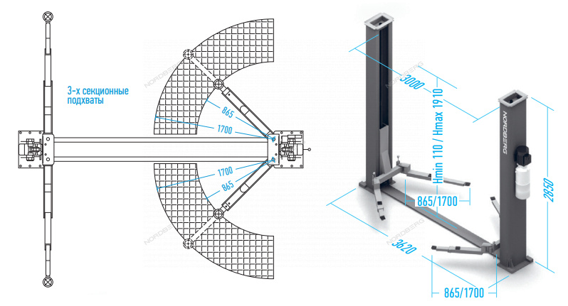 Электрогидравличекий двухстоечный подъемник г/п 4 т. NORDBERG N4120BM-4B
